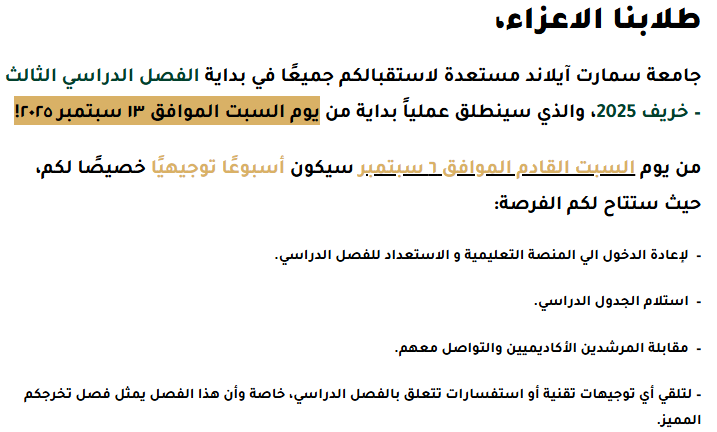 حرصًا على الالتزام بالأنظمة التعليمية والاكاديمية، نود تذكيركم بأنه